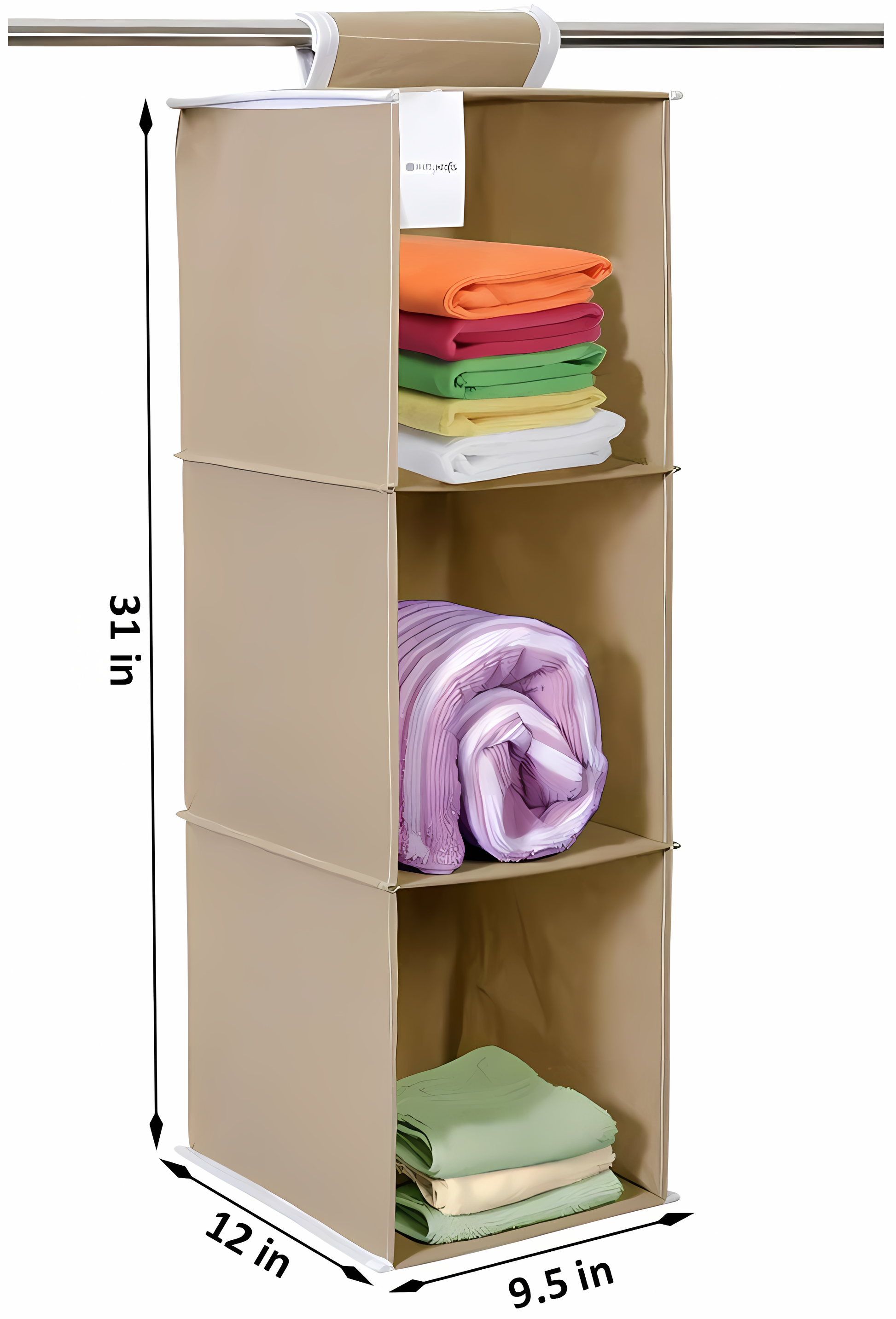 Cloth Organizer - Hanging 3 Shelves Wardrobe Organizer